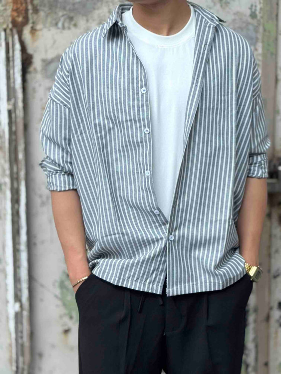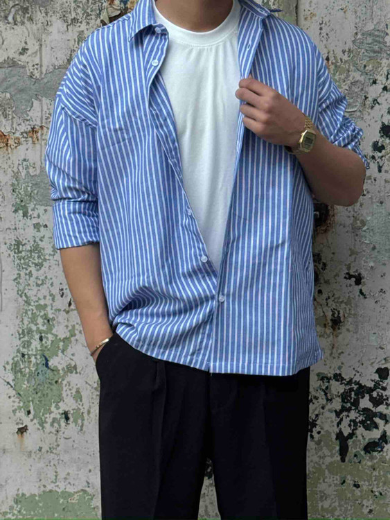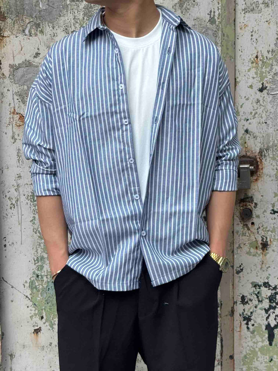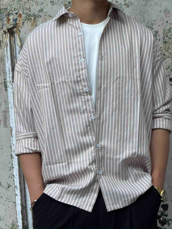 پیراهن راه راه باکسی با کیفیت بالا و قواره عالی، قواره باکسی باعث میشه قد کشیده تر و بلند تر نشون بدهد با ضمانت✅